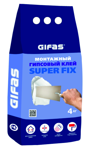 Сухая клеевая смесь для проведения внутренних работ в помещениях с нормальной влажностью. Изготовлена на основе гипсовых вяжущих с добавлением специальных минеральных и химических добавок, обеспечивающих высокую адгезию, водоудерживающую способность и оптимальное время работы, легкость приготовления и нанесения. Используется для бескаркасного крепления гипсокартонных и гипсоволокнистых листов (ГКЛ, ГВЛ), гипсовых декоративных элементов, теплоизоляционных материалов (минераловатных и пенополистирольных плит) к вертикальным кирпичным, каменным, цементно известковым поверхностям, а также монтажа пазогребневых гипсовых литых плит.