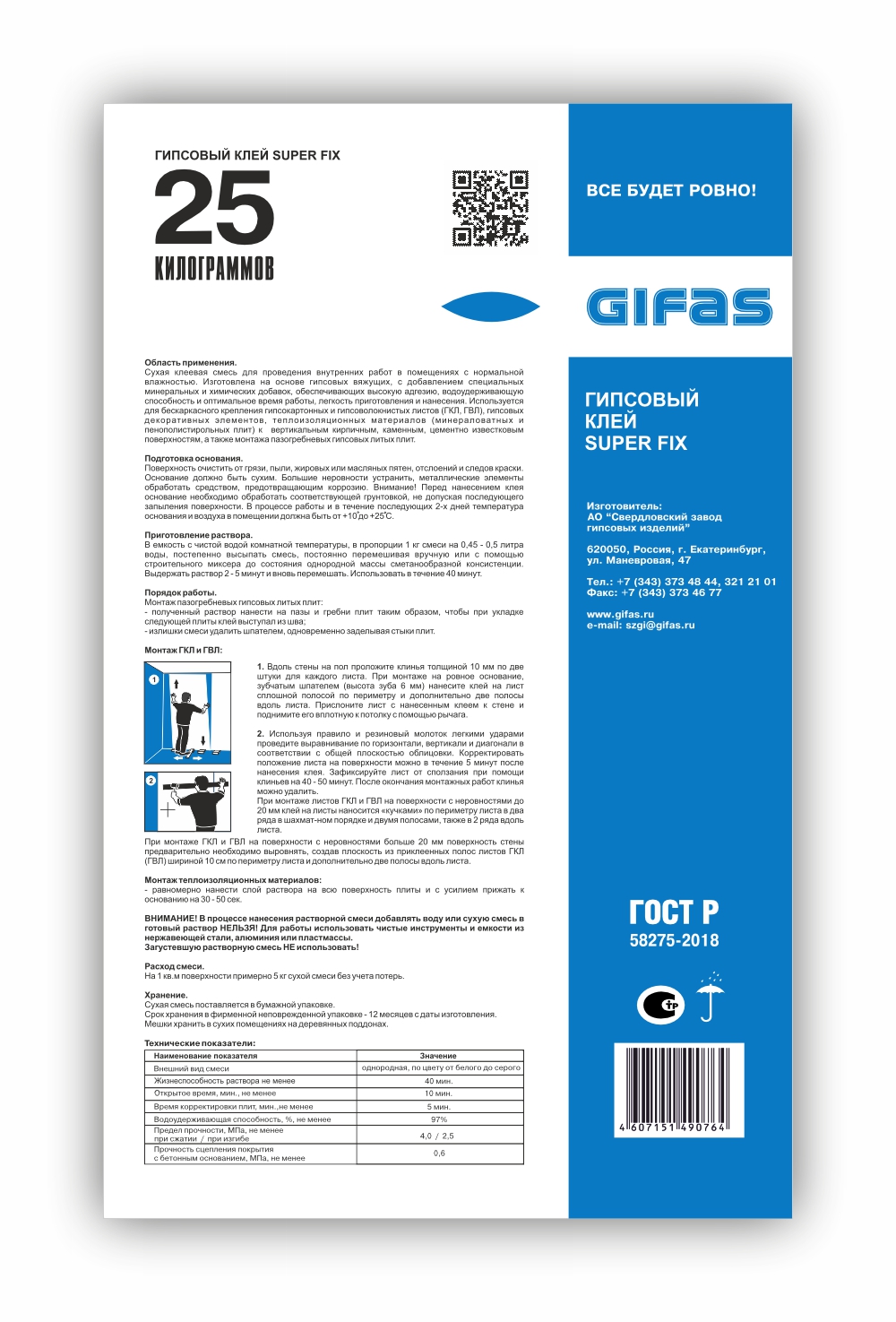 Смесь сухая клеевая на гипсовом вяжущем ГОСТ Р 58275-2024
