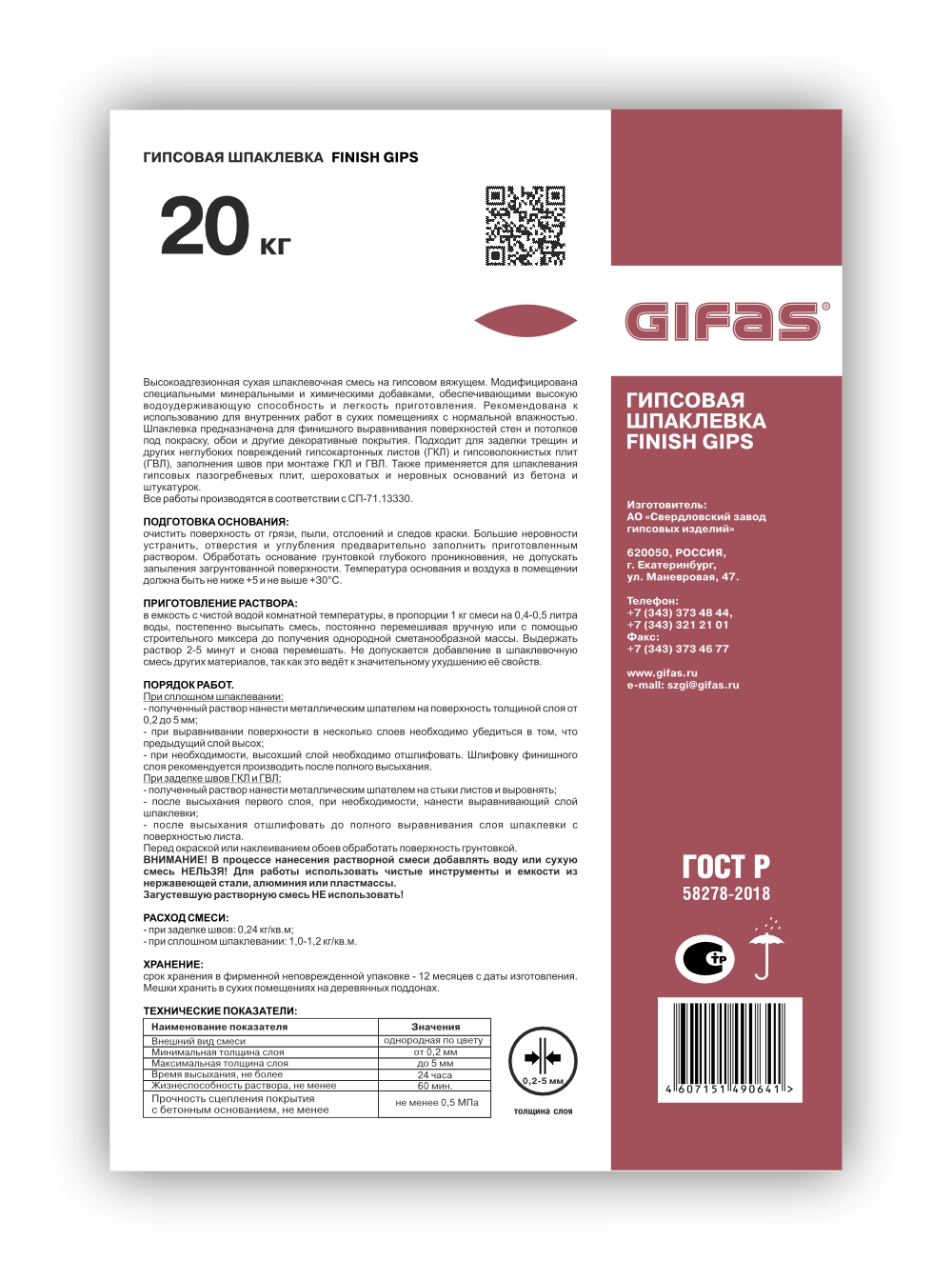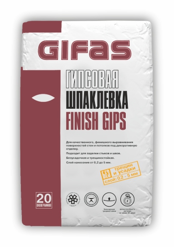 Высокоадгезионная сухая шпаклевочная смесь на основе гипсовых вяжущих. Модифицирована специальными минеральными и химическими добавками, обеспечивающими высокую водоудерживающую способность и легкость приготовления.