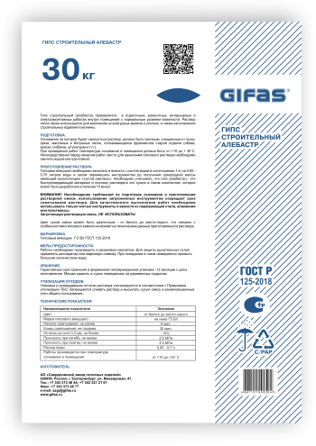 Гипсовые вяжущие Г-5 БII ГОСТ 125-2018